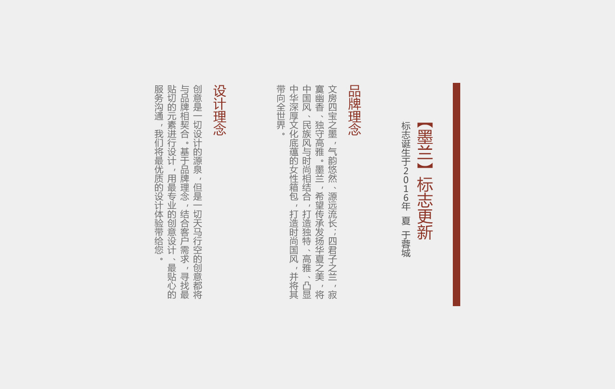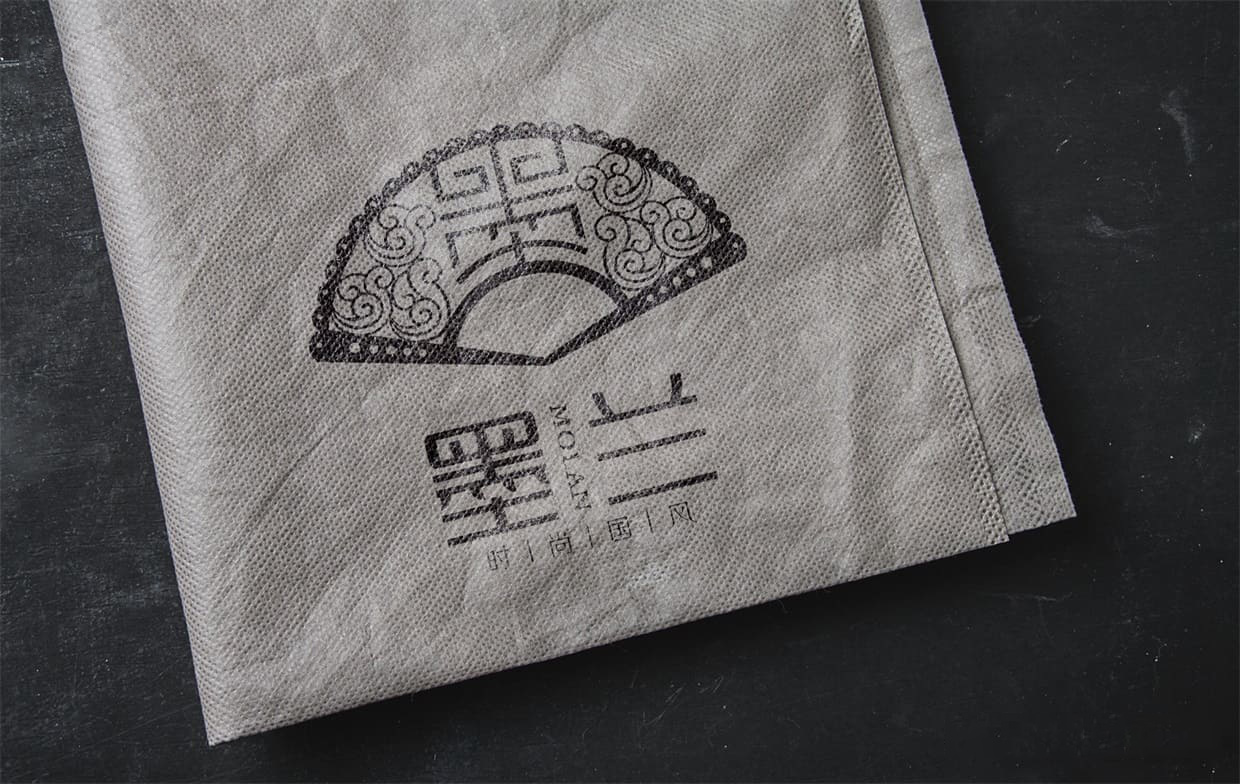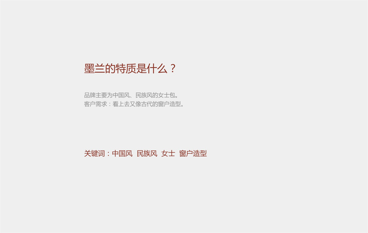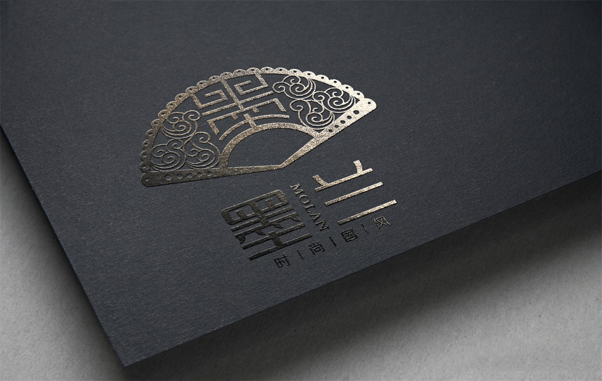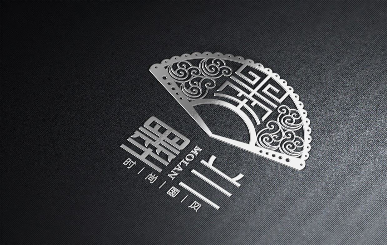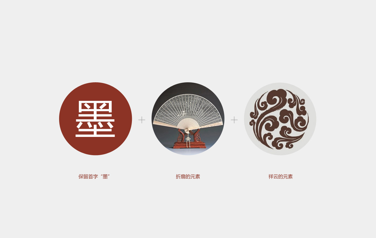 標(biāo)志設(shè)計(jì)的風(fēng)格貼近中國(guó)風(fēng),體現(xiàn)時(shí)尚國(guó)風(fēng)的品牌理念。在標(biāo)志的元素選擇上,我們?cè)诒姸嘀袊?guó)符號(hào)中挑選了最能夠體現(xiàn)中華文化的漢字“墨”來作為標(biāo)志的核心主體,其次是折扇與祥云作為輔助。