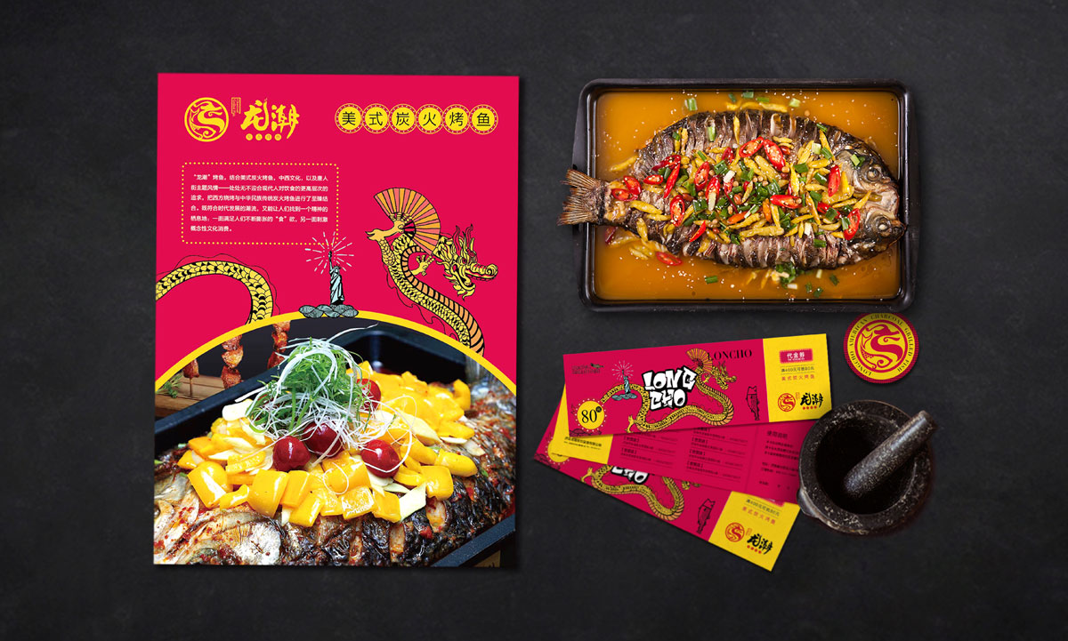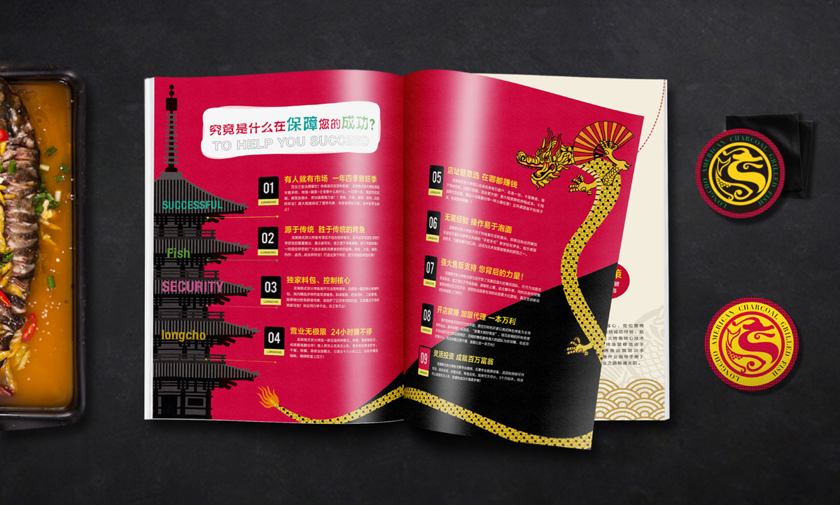 龍首魚尾玉生輝,logo設(shè)計(jì)將龍、魚和玉的形態(tài)作為靈感來源,進(jìn)行了精準(zhǔn)巧妙的融合。將龍尾融入傳統(tǒng)書法,使“龍潮”生動(dòng)形象又具有東方神韻。在企業(yè)品牌形象建設(shè)、VI系統(tǒng)、網(wǎng)站建設(shè)及店面SI系統(tǒng)的設(shè)計(jì)上,將美式和東方元素進(jìn)行了大量的提煉和融合,使龍潮產(chǎn)品的美式風(fēng)格與民族特質(zhì)巧妙地結(jié)合在一起,使傳統(tǒng)和現(xiàn)代感在碰撞中實(shí)現(xiàn)統(tǒng)一,打造出極具唐人街文化特色的主題餐廳,為龍潮完成了全國范圍內(nèi)統(tǒng)一的整體品牌形象創(chuàng)意設(shè)計(jì)。