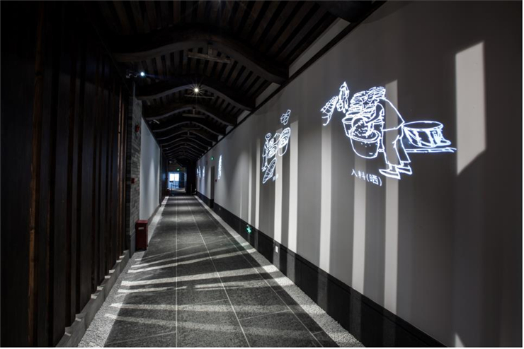 三樓內走廊讓參觀更加便捷,墻面上的數字投影,生動反映了釀制醬油的主要步驟。