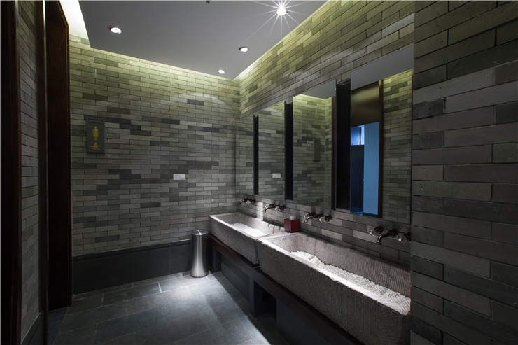 利用馬槽的造型,設制的盥洗臺,頗有韻味。