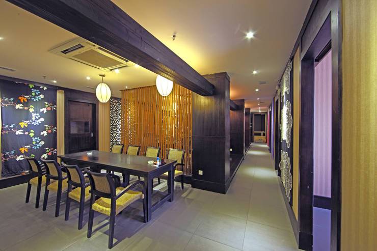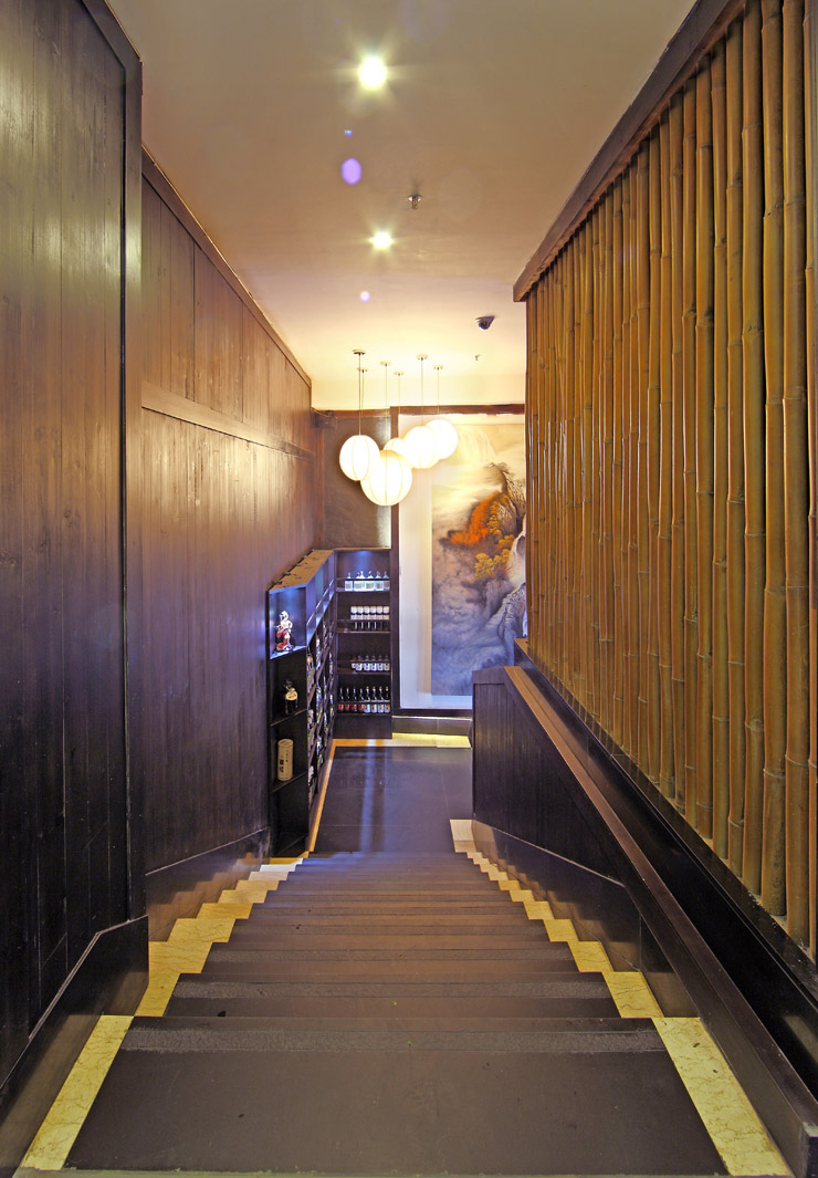 酷愛美食的設計師,深切地體會到,裝修得越天然、越樸素,往往菜品味道越好。因此,在空間中設計師大量使用了竹子這種天然材料,在他看來,竹子寓意氣節,非常具有東方的氣質,更能襯托出日本料理的精致感。效果出來后,翻譯告訴設計師,凡來這里的日本人都非常喜歡。