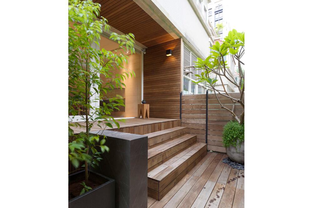 從原本錯置的零碎高低變化中,透過抬昇的方式整合成為一個單純的整合平面