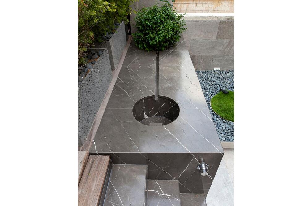 利用鐵架與石材的轉(zhuǎn)折變化,