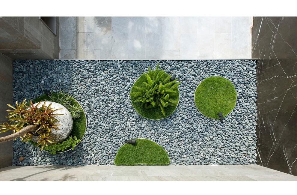 室外的綠意透過遮濾後的光線引入室內(nèi)形成一個凝結(jié)的視線