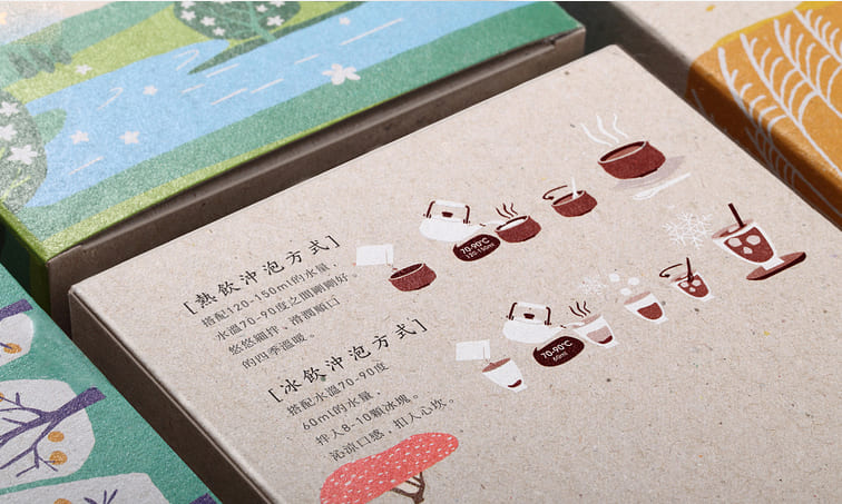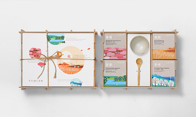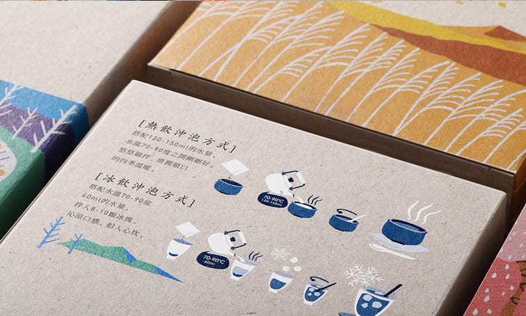 吾谷茶糧擂茶茶葉四季禮盒包裝設(shè)計插畫設(shè)計