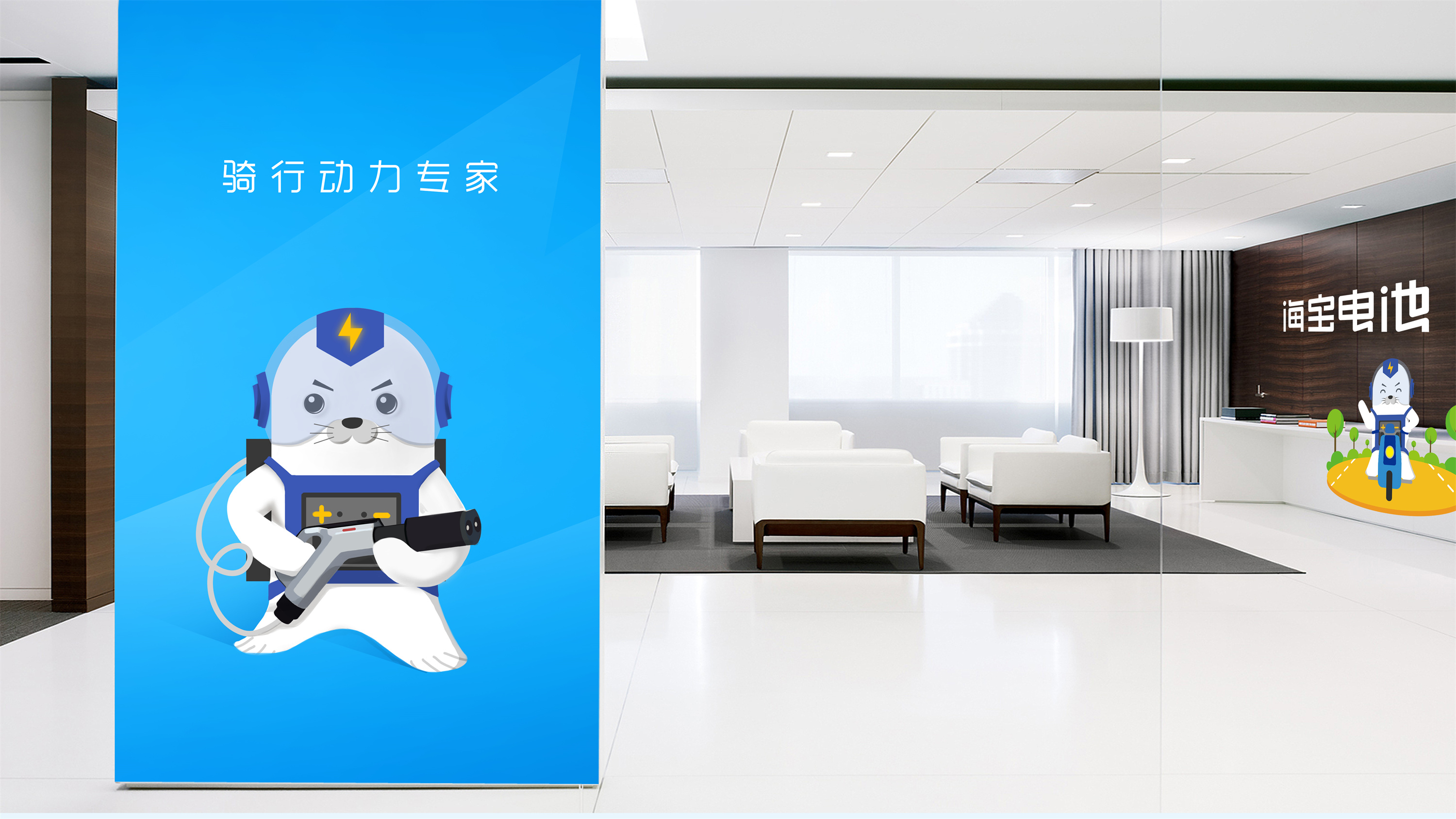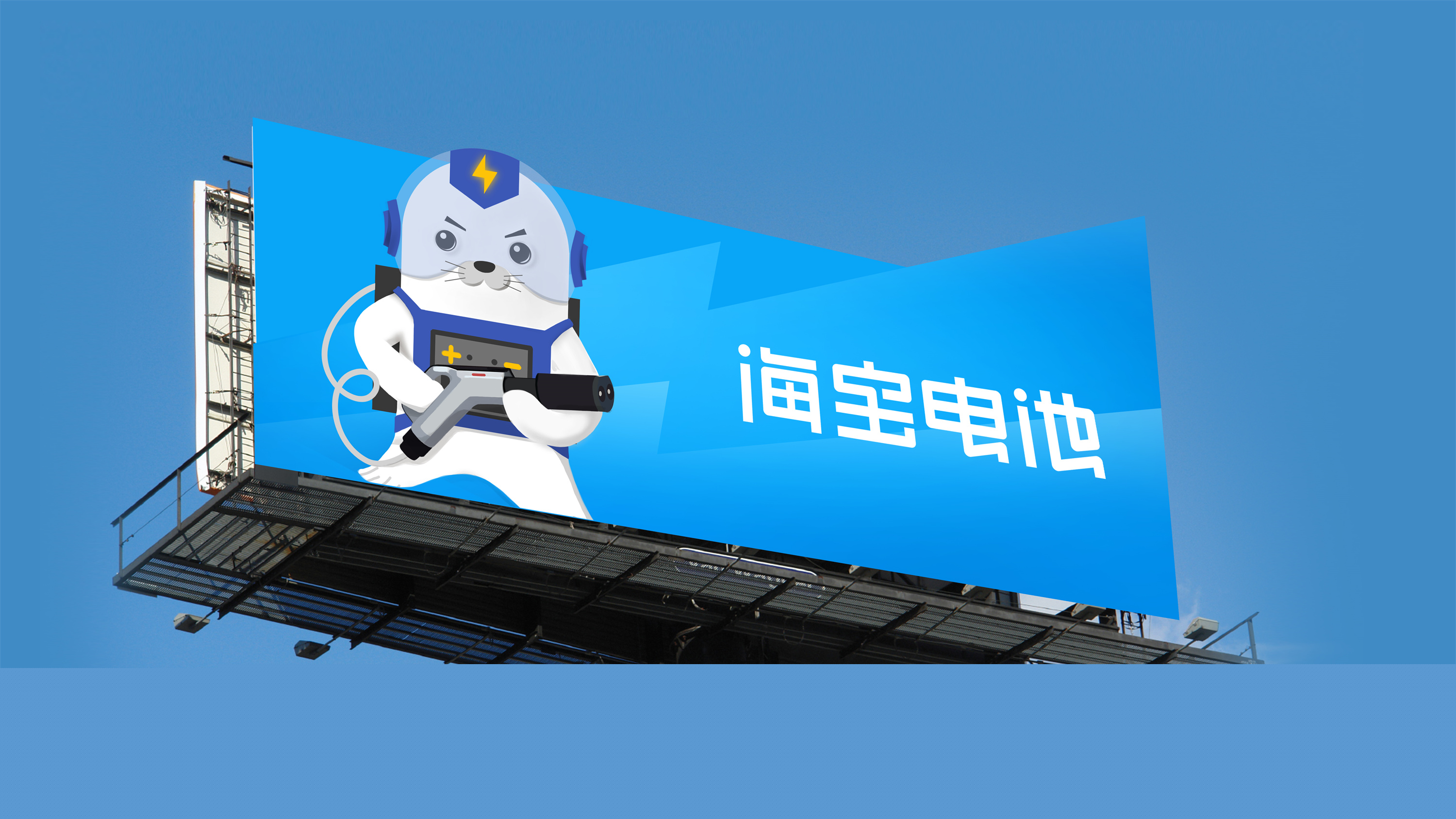思路4、為了更好地表明品類信息,我們將電池元素巧妙地設計在海寶的胸前,好像海豹陸戰(zhàn)隊的防彈衣,將正負極標識設計到“防彈衣”上,同時將代表能量的閃電標識設計到頭盔上方中間。多元素結(jié)合之下,本來可愛的海豹形象儼然成為了一位集可愛與能量于一身的小戰(zhàn)士形象,它就是“海寶”。